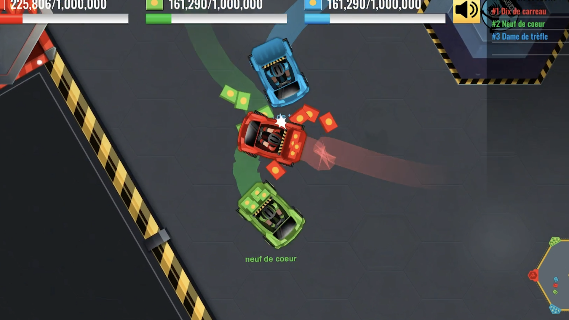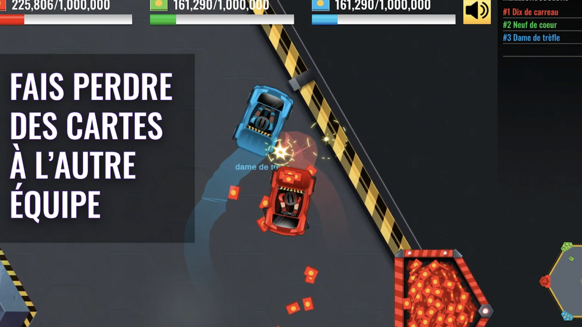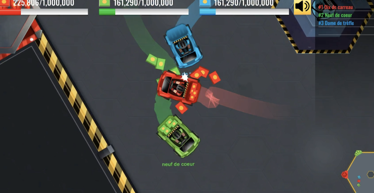 Trois équipes assemblent chacune un château de cartes. À bord d’une auto-tamponneuse les participants naviguent habilement sur une surface glissante qui sépare le lieu de construction du château et les matériaux requis pour le construire. Attention, toute collision avec l’auto-tamponneuse des équipes adverses fait tomber les cargaisons.