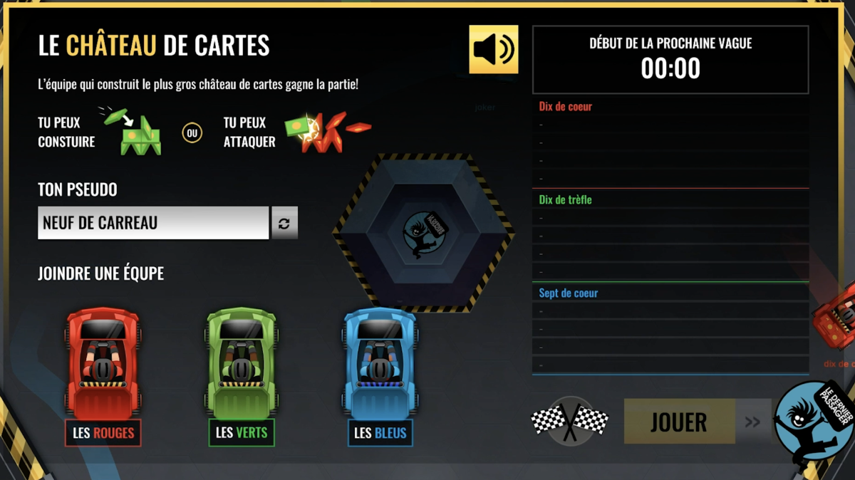 Le jeu Château de cartes met à l'épreuve l’agilité, la vitesse et la stratégie. C'est un jeu en réseau qui utilise une technologie multi-joueurs pour réunir dans un même espace de jeu des groupes pouvant atteindre 15 utilisateurs à la fois.