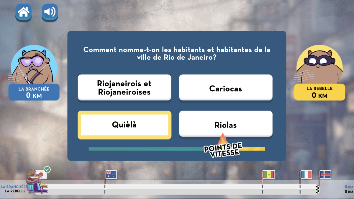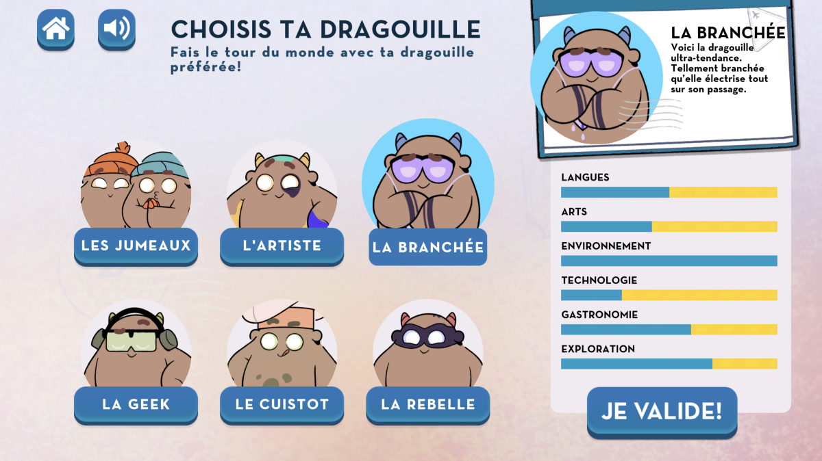 Embarquez pour une aventure palpitante à travers le globe avec les dragouilles! Ce jeu-questionnaire captivant combine la découverte de la géographie, de l'histoire et de la culture avec l'humour délirant des célèbres patates-dragons de la franchise «Les dragouilles». Affrontez la dragouille de votre choix et accumulez les kilomètres en répondant correctement aux questions de culture générale sur les pays visités pour remporter la course. Le jeu propose un choix de 6 dragouilles et des options de personnalisation de son véhicule. Un tour du monde en 5 étapes est généré aléatoirement en fonction de sa ville de départ. C'est un total de 8 villes, plus de 100 questions et de nombreux faits amusants sur les pays visités qui vous attendent. Le jeu est publié sur la zone jeunesse de Radio-Canada.
