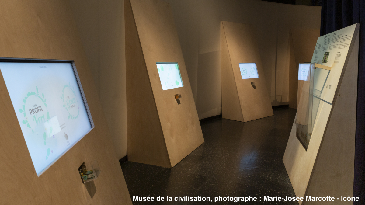 Au cœur de l’exposition, le parcours interactif Mon profil vert permet au visiteur de s’engager personnellement contre la crise climatique, en analysant ses habitudes et intérêts pour lui proposer des solutions concrètes et adaptées individuellement. Au travers des cinq grands thèmes liés à la biodiversité, l'alimentation, la consommation, la construction et le transport, l'utilisateur est invité à tester ses connaissances en écologie et à découvrir son «profil vert». Il se connecte à des stations interactives via un ingénieux système d'avatar qui le suivra tout au long du parcours. Les stations sont en lien avec les thématiques de l'exposition et posent des questions en rapport avec les oeuvres d'art présentées et l'écologie. Les stations sont connectées à des machines que le visiteur peut utiliser : machine à pince, distributrice à sandwich, etc. À la fin du parcours, le visiteur découvre son «profil vert» et reçoit des conseils personnalisés, ainsi que la possibilité de le partager.