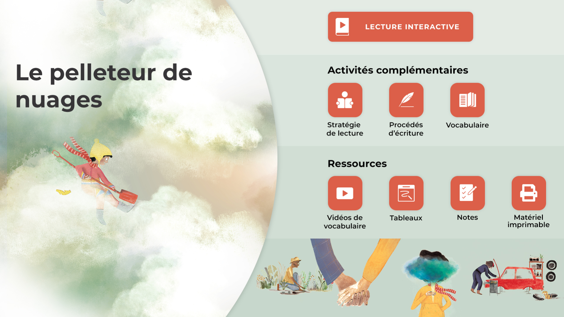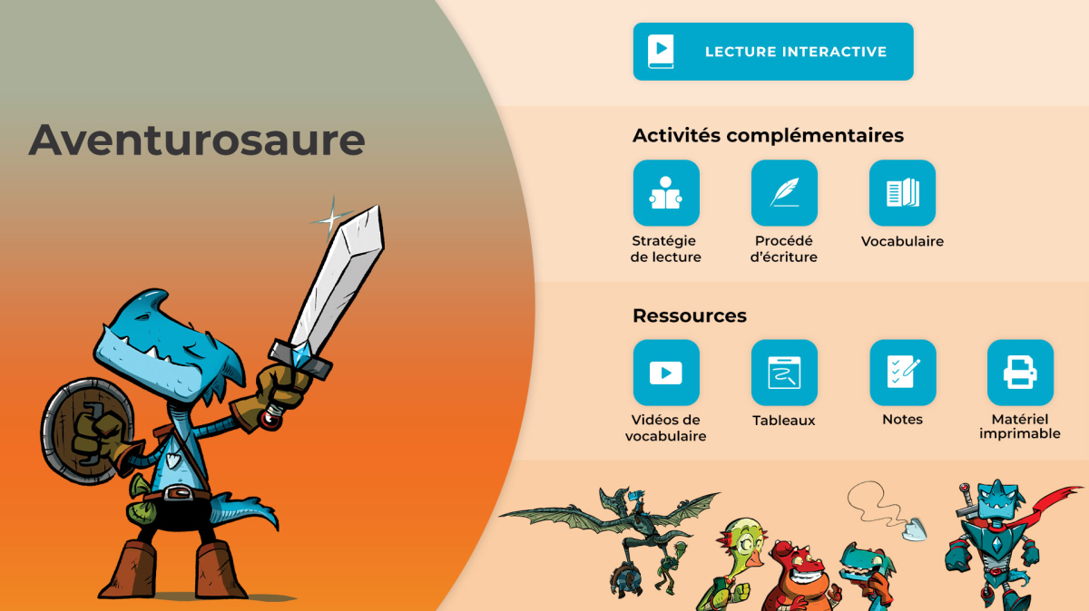 Les trousses de littérature proposent une expérience innovante qui plonge les élèves du 2e et du 3e cycle du primaire dans l’apprentissage de la lecture et de l’écriture grâce à des missions ludiques. Elles mettent en vedette des bandes-dessinées et albums québécois adaptés pour le tableau numérique interactif (TNI). Chaque trousse comprend : une lecture interactive clé en main où les élèves sont invités à discuter, à émettre leurs hypothèses et à construire leurs réponses.